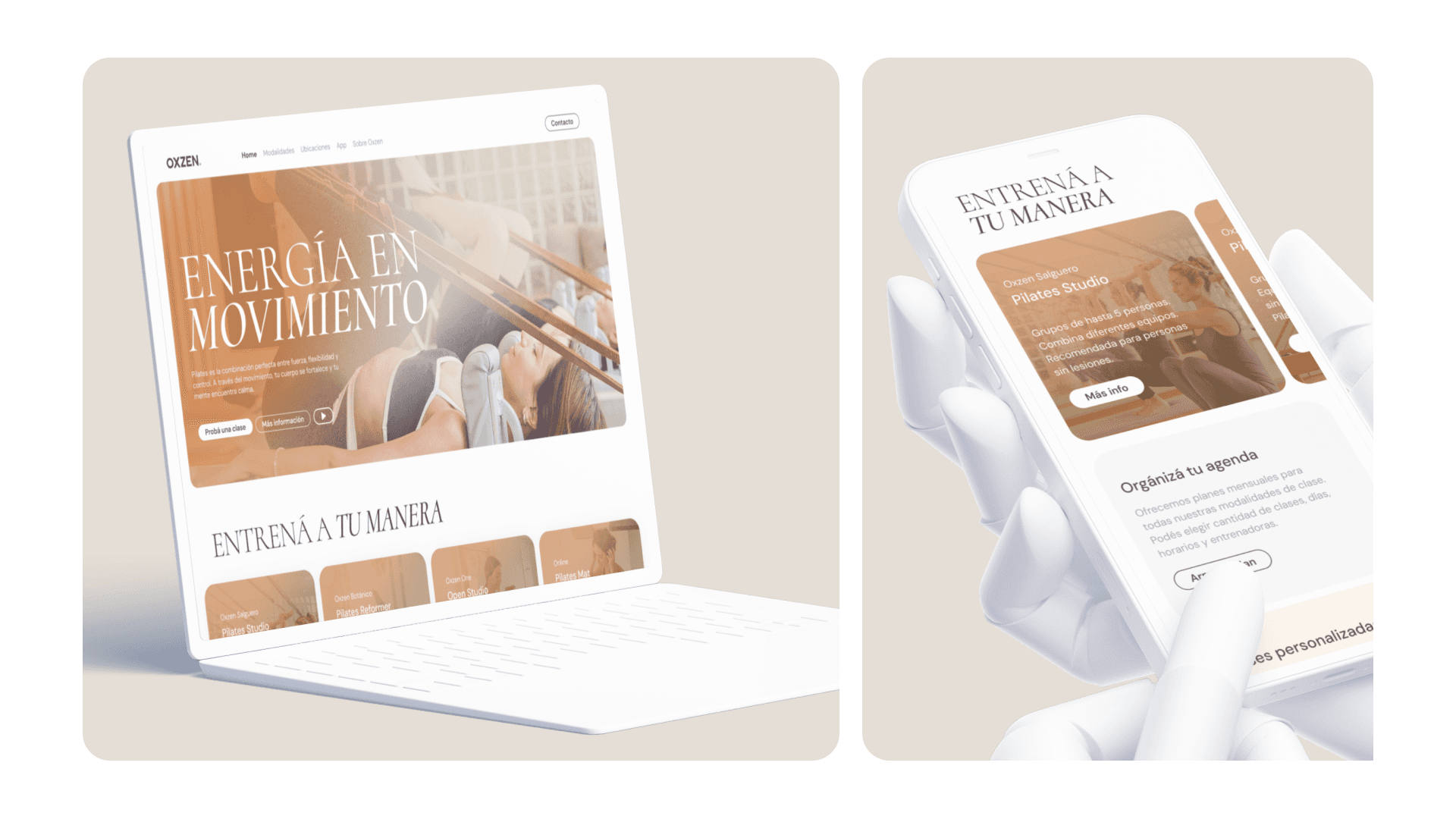 Oxzen es un reconocido estudio de Pilates de Buenos Aires, Argentina. Sus creadoras nos invitaron a un viaje de transformación de su identidad de marca y sitio web.