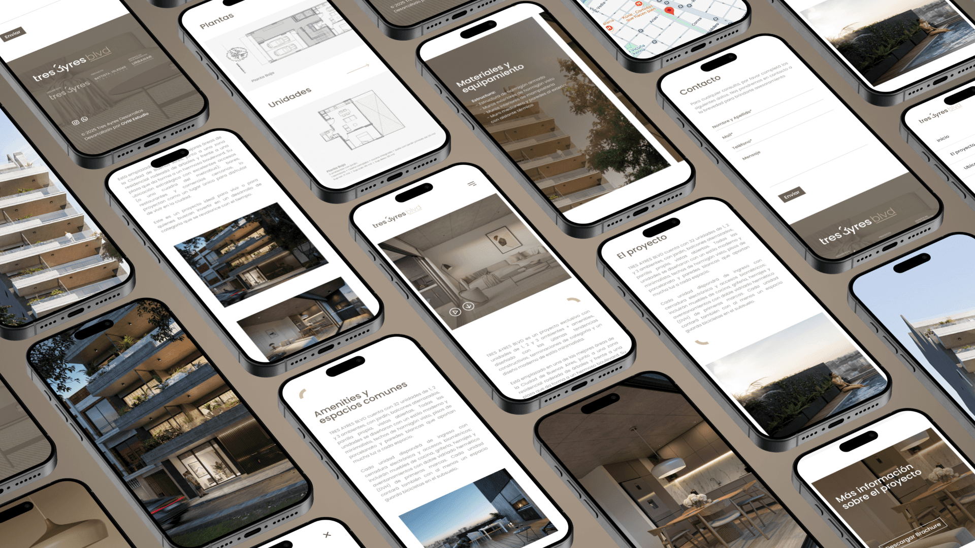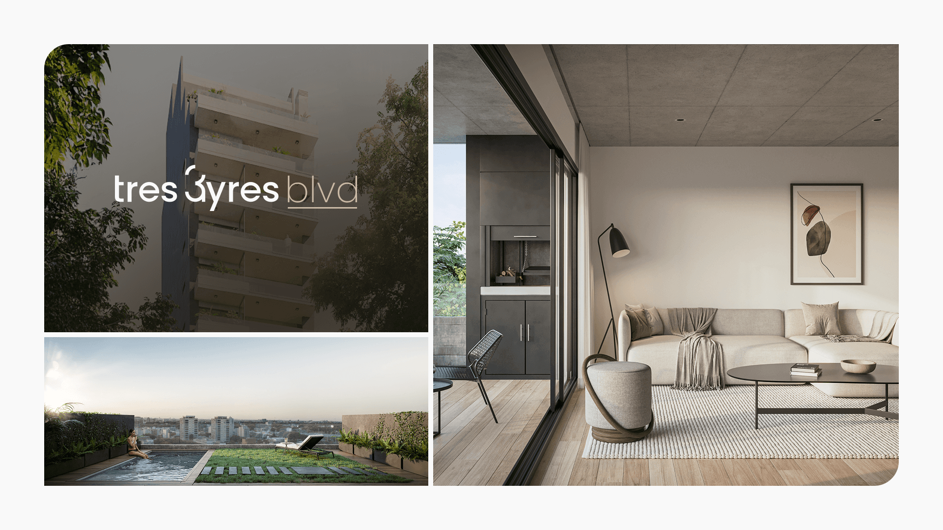 Tres Ayres es una desarrolladora inmobiliaria que opera en Buenos Aires, Argentina. Acompañamos a su equipo en el desarrollo integral del branding de la empresa así como el de su proyecto más reciente: Tres Ayres Boulevard. Para este último, sumamos el diseño y desarrollo de una Landing Page y Brochure de venta.